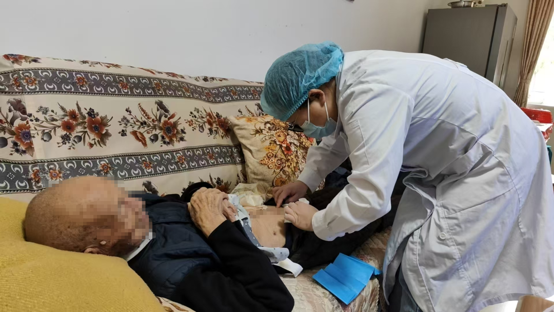 图:持证护士上门为老年患者服务(湘潭市第一人民医院供图)